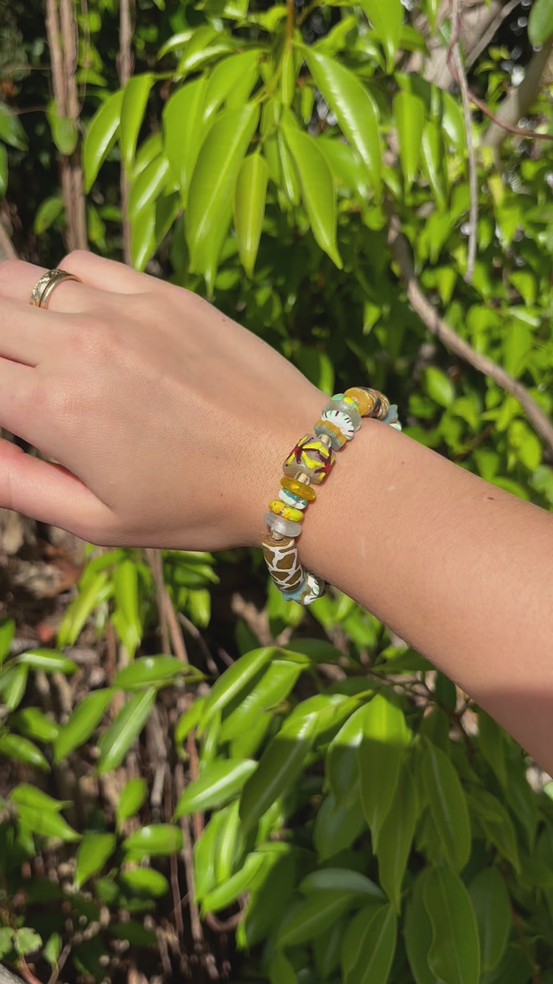 Handmade bracelet created with beautiful hand painted recycled glass beads from Ghana.
