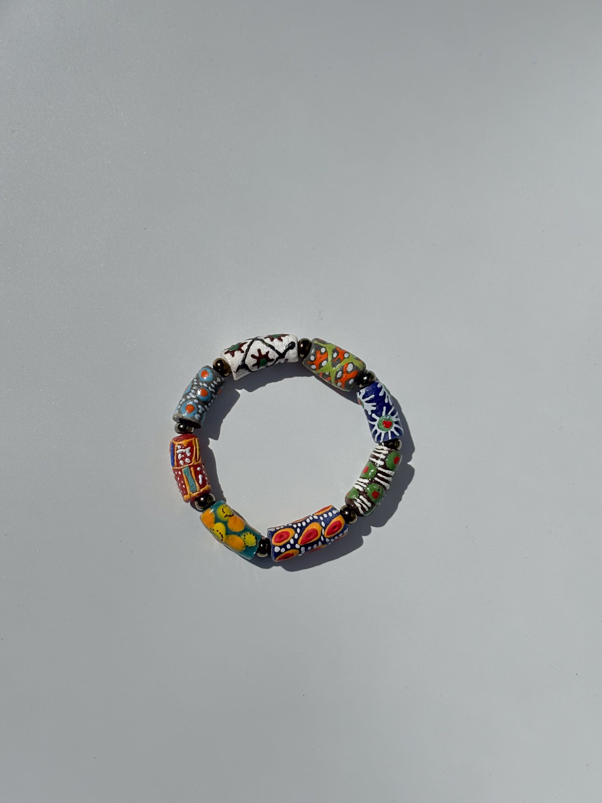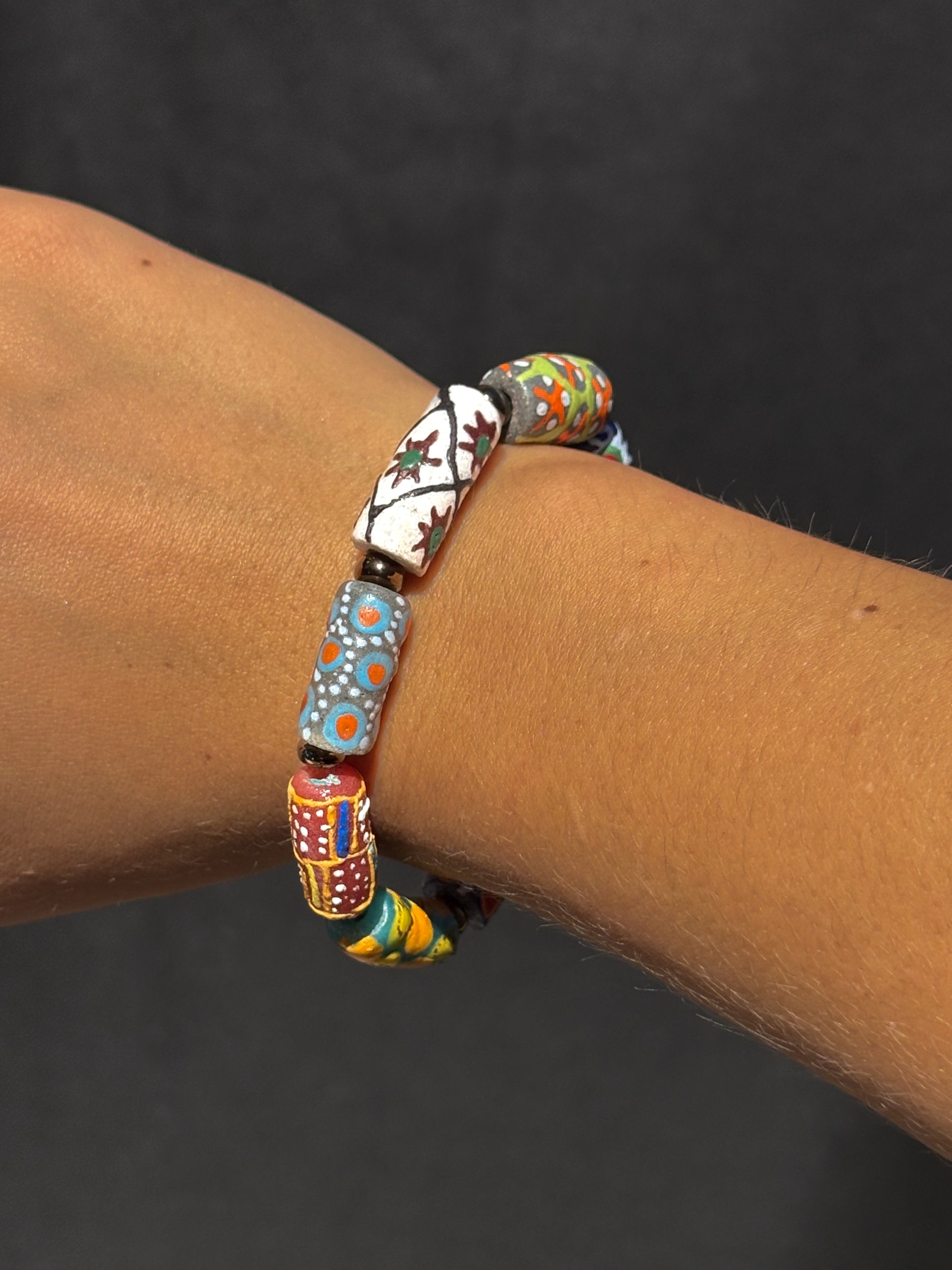 Handmade bracelet created with beautiful hand painted recycled glass beads from Ghana.