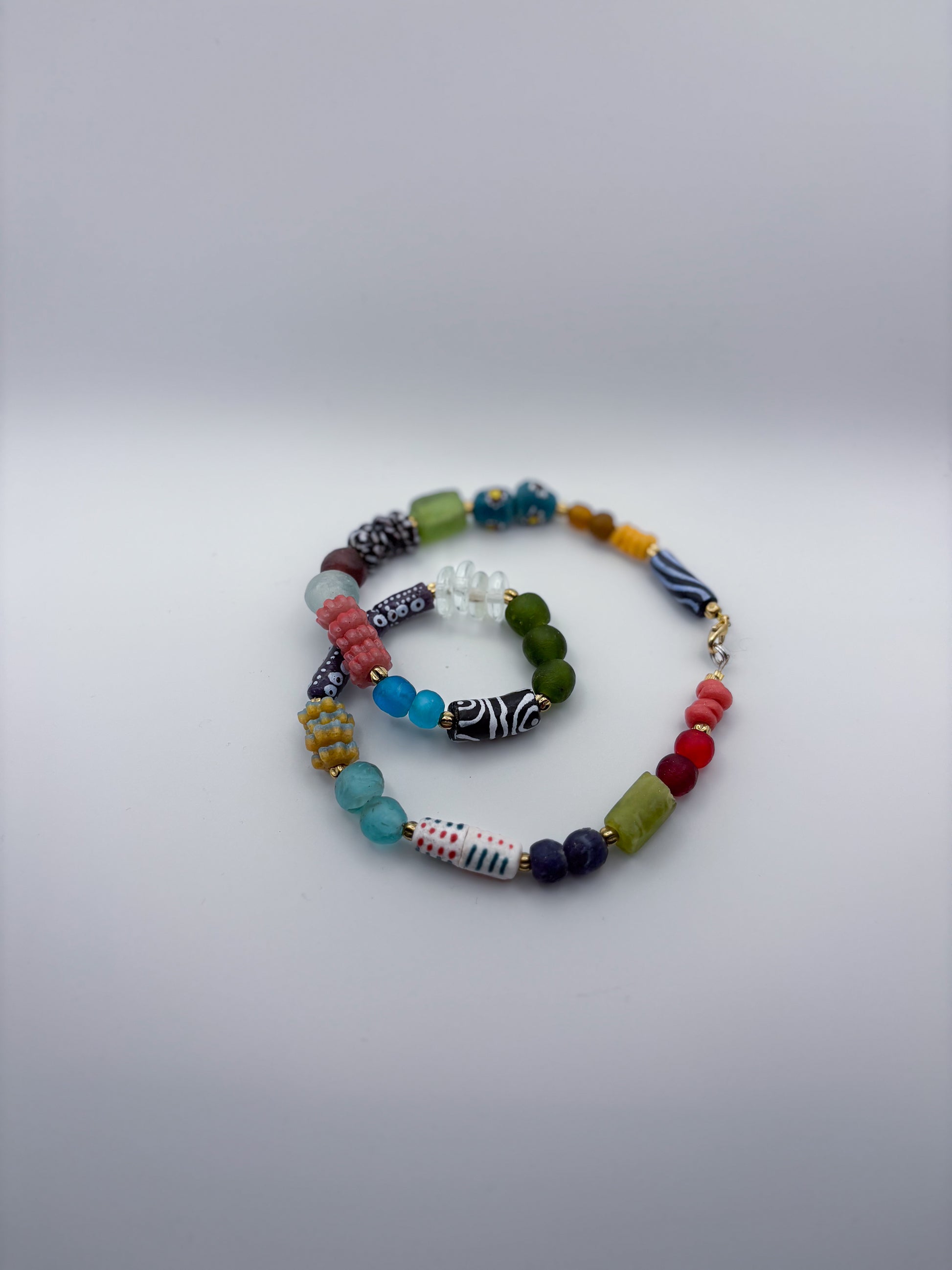 Handmade necklace created with beautiful hand painted recycled glass beads from Ghana.