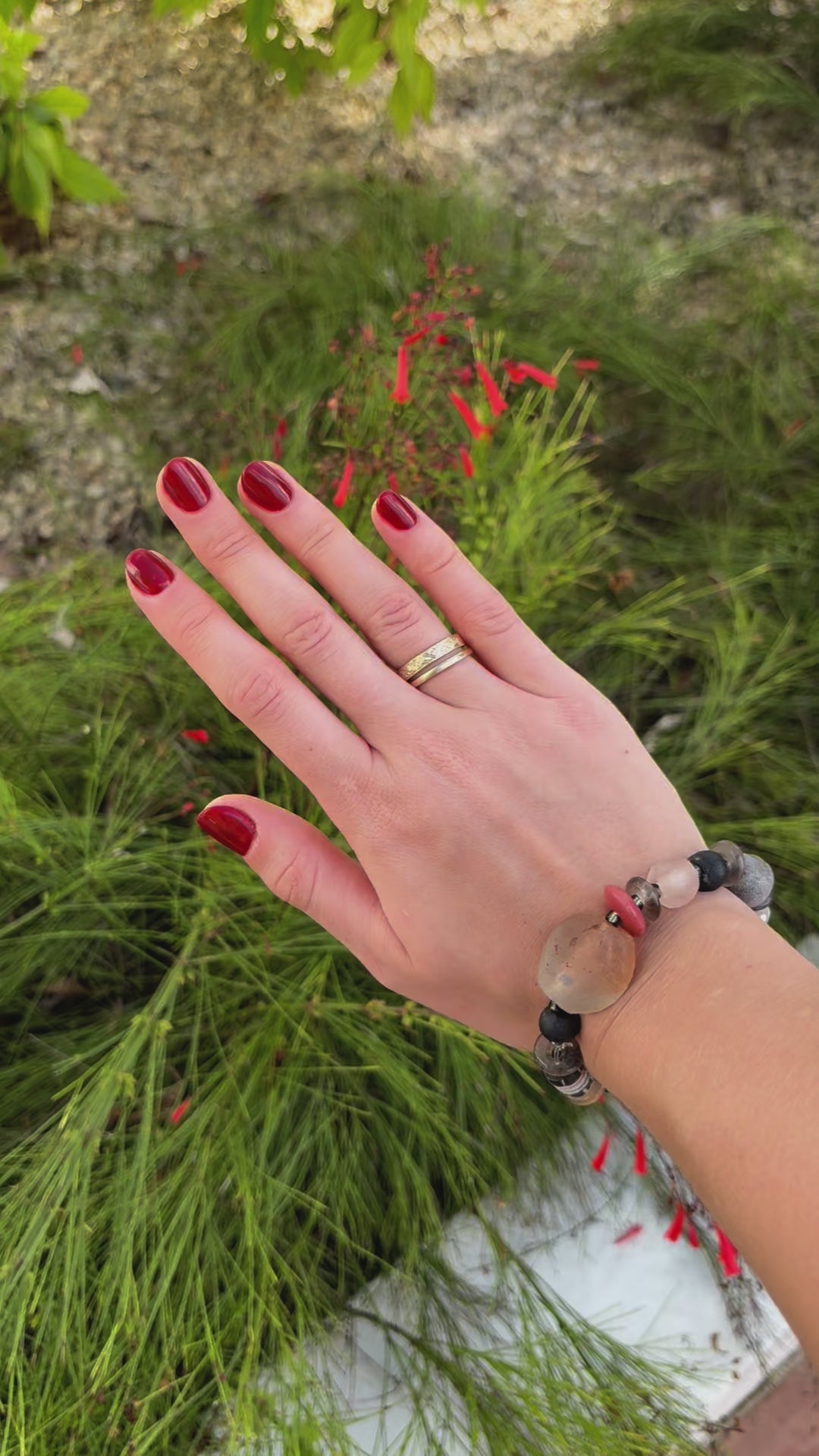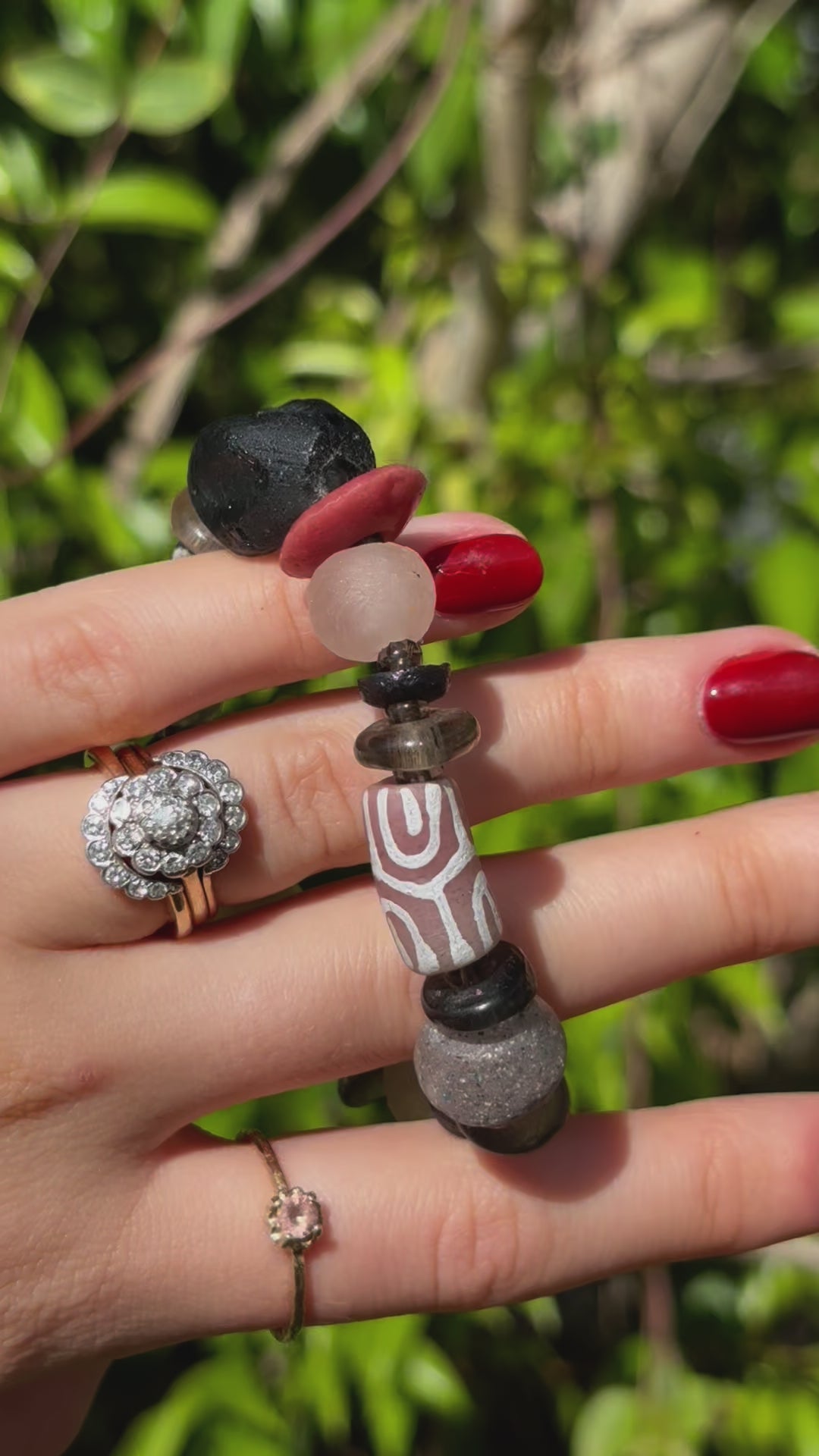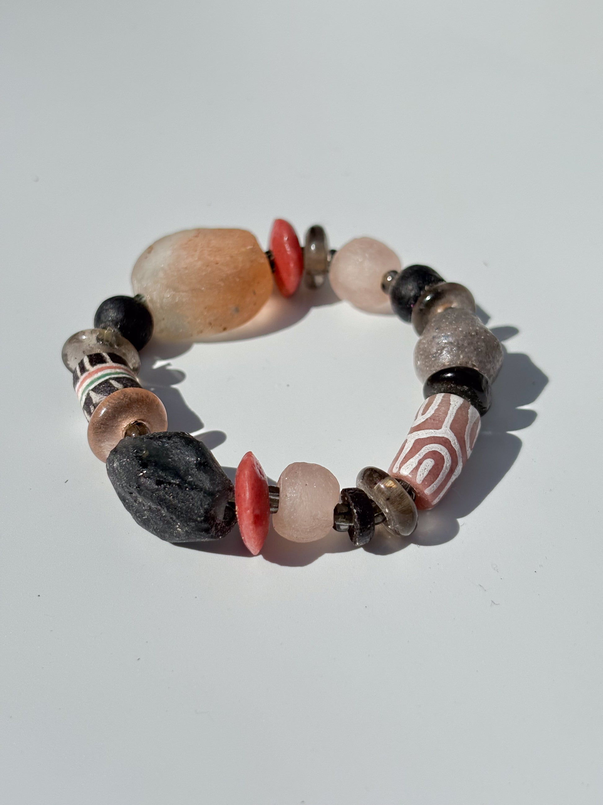 Handmade bracelet created with beautiful hand painted recycled glass and brass beads from Ghana.