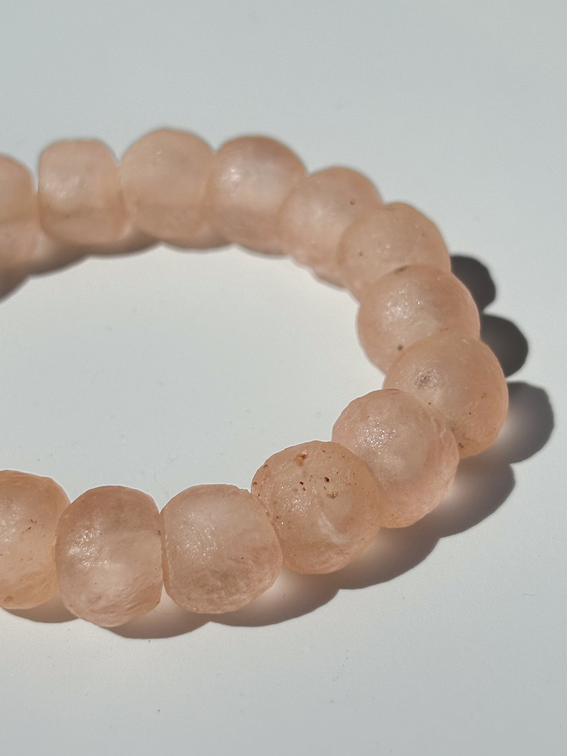 Handmade bracelet created with beautiful hand painted recycled glass and brass beads from Ghana.
