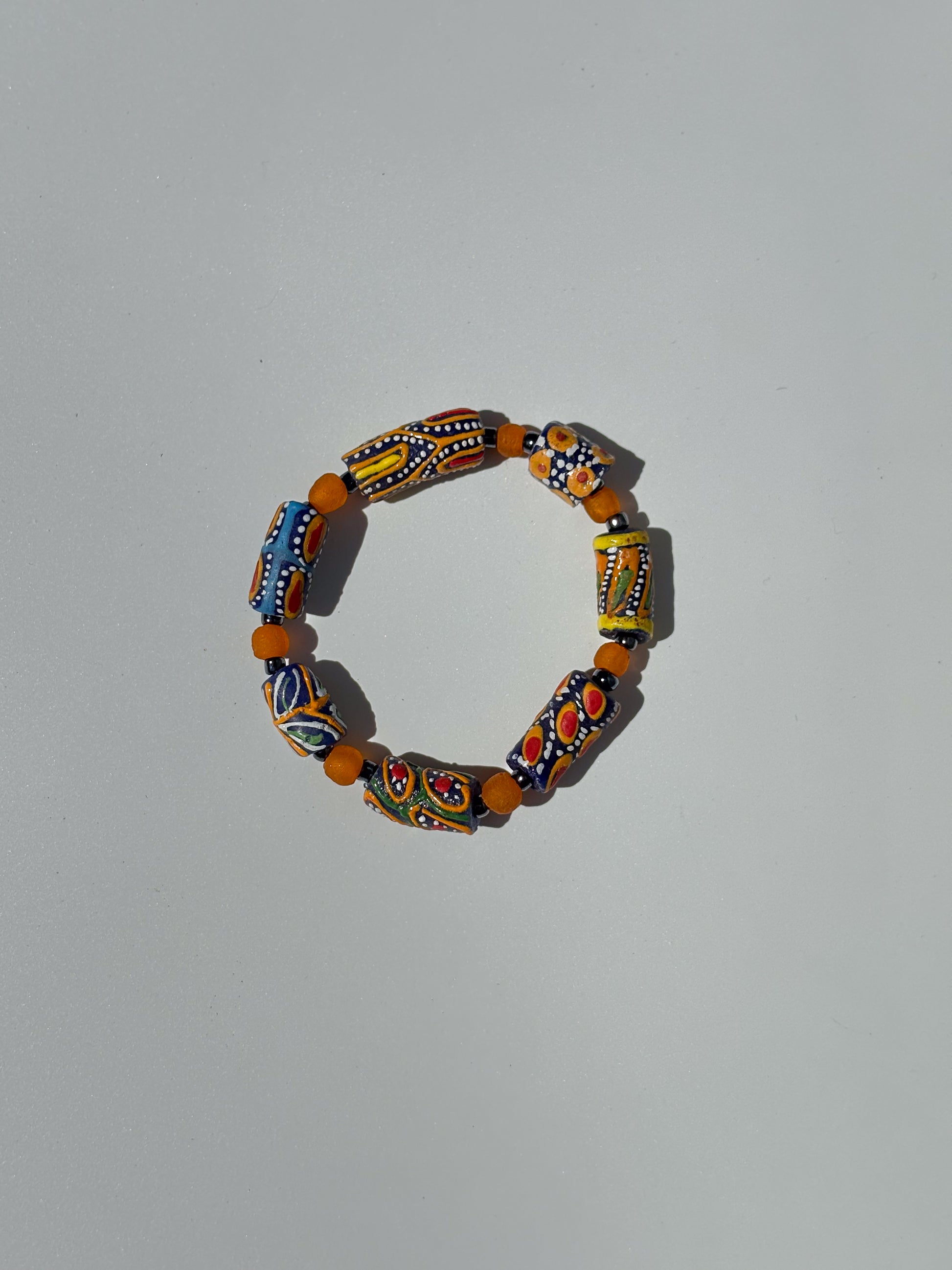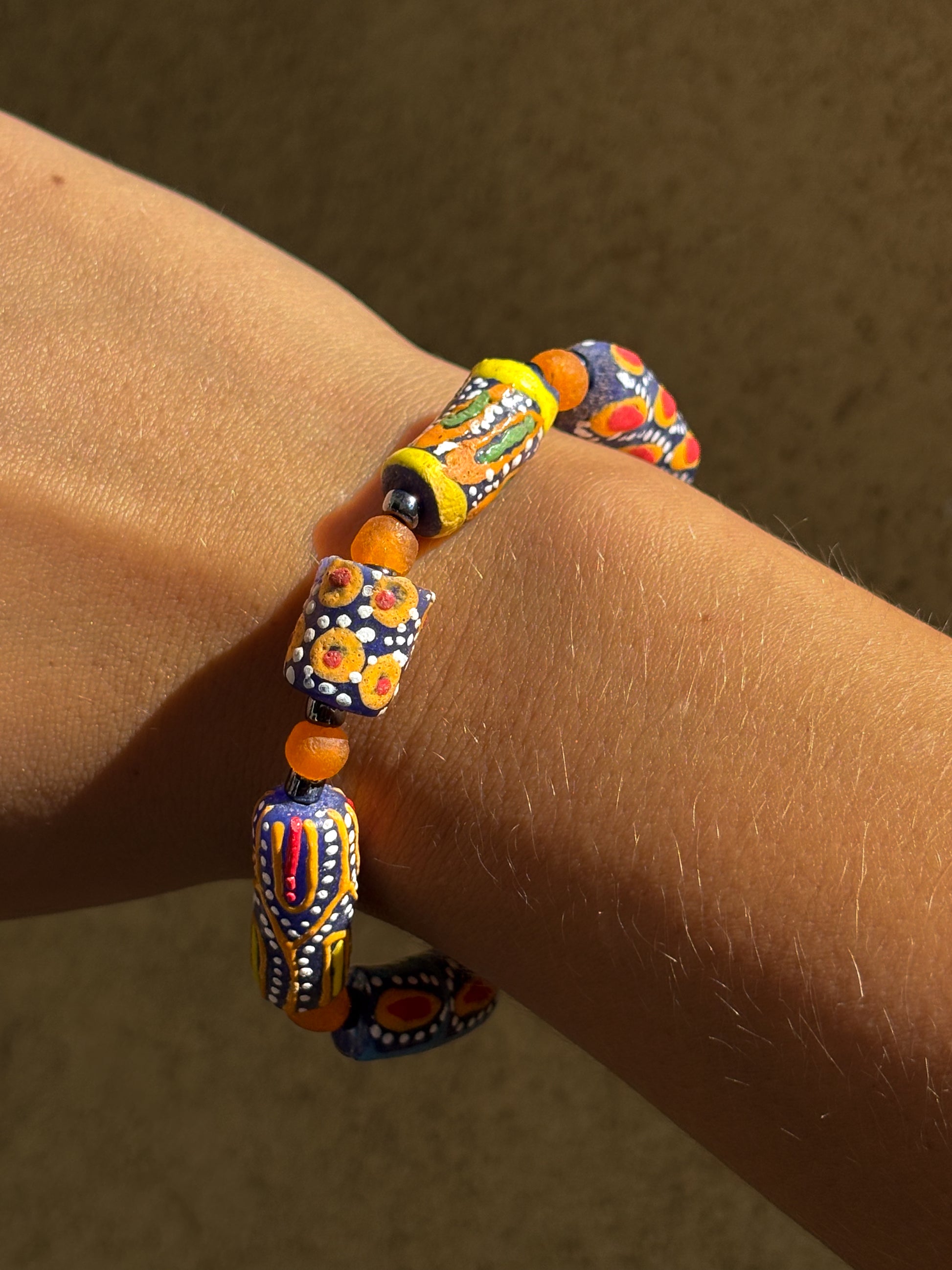 Handmade bracelet created with beautiful hand painted recycled glass beads from Ghana.